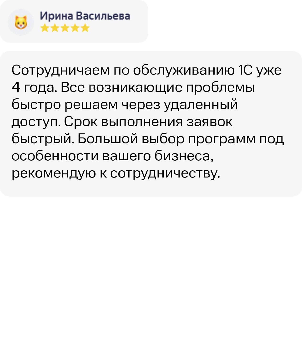 Оказываем все виды консультационного и технологического обслуживания пользователей программ "1С" по стандарту, разработанному фирмой «1С».